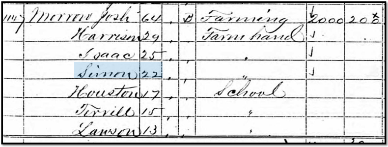 Fortunately, William Morrow wrote his will on 13 January 1861. He wrote the following, “I give and bequeath to my son James A., Berry and Sena and the children that is now with her . . .” (Fayette County, Tennessee Wills, Vol. B, Jan. 1855-Nov 1905, pages 153-154). This was Joshua and Senna Morrow! Interestingly, one of their grandsons was named Berry Joshua Morrow, which evidenced that Berry and Joshua were the same person.
