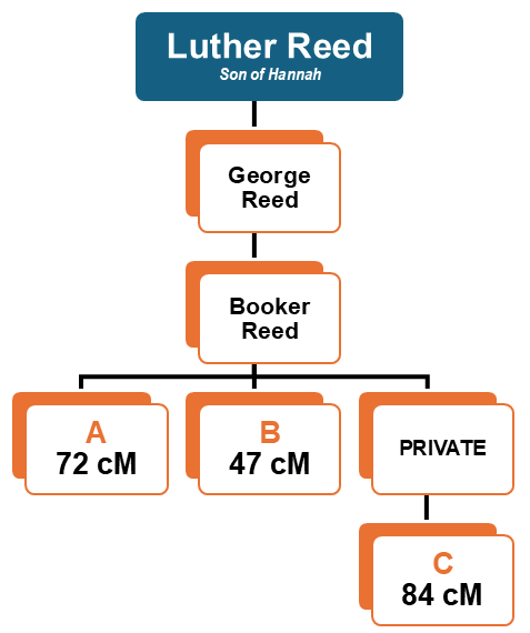 Remarkably, two of George Reed’s granddaughters and one of his great-grandsons share DNA with my family. Their shared centimorgan totals, especially with my mother’s brother, strongly indicate a close familial relationship. See chart below. Additionally, after examining the shared DNA matches with George’s granddaughters, they also share at least 20 cM or more with eleven of Alfred Reid Liddell’s thirty-one descendants. This DNA evidence, along with other genealogical clues, suggest that Grandpa Bill Reed and Luther Reed were likely first cousins who ended up in different parts of northern Mississippi and probably never saw one another again after the start of the Civil War.
